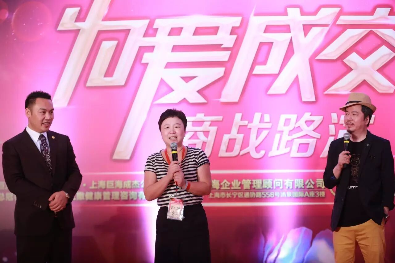 这样一位爱心企业家到底是如何结缘巨海的呢?庄红娟女士初识巨海缘于2015年7月秦以金老师的《打造商界特种部队》,2015年9月份,她参加成杰老师主讲的《一语定乾坤》,正式与巨海结缘。走进《一语定乾坤》后,她发现巨海的“美”,成杰老师的“美”,正是她所需要的“美”,正是因为爱上了“美”,并渴望成为“美”,于是决定加入巨海,成为巨海的一份子!2015年10月底,庄红娟便成为了巨海义乌分公司的掌门人,跟随成杰老师一起学习、成长和精进。在边学边践行边经营的日子里,亲身感受了自己与团队共同成长的快乐。庄红娟女士说:“看到自己的客户们在课堂上越来越绽放,在生活与自身经营中越来越自信,越来越有方法的时候,我觉得无比的荣耀和骄傲,这一刻,我深深的感受到教育培训的魅力所在——帮助人,影响人和成就人!”