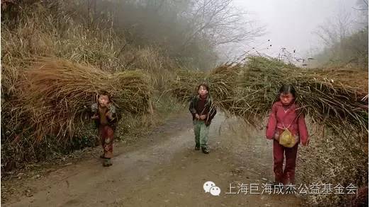 一次拍摄路上,看到三个年幼的孩子背着厚厚一捆稻草回家,出于摄影本能,摄影师随手拍下这张照片。当时摄影师没觉得有什么异样,但当他走过三个孩子回头再看时,发现那个穿红衣服的女孩,袖管会来回飘动……这是第一次见到向丽萍,那年她刚14岁,带着两个弟弟下地割草。