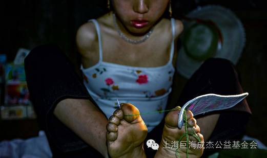 很难想象,向丽萍在10多年时间,是凭着一股怎样的毅力和艰辛,才练就出基本的生活技能。小姑娘从小性格好强,从四岁断臂后就开始练习用脚做各种事,不学会不罢休。她会用脚纳鞋底,穿针引线非常麻利,还会一手好湘绣。